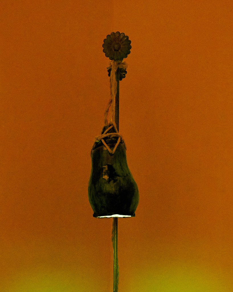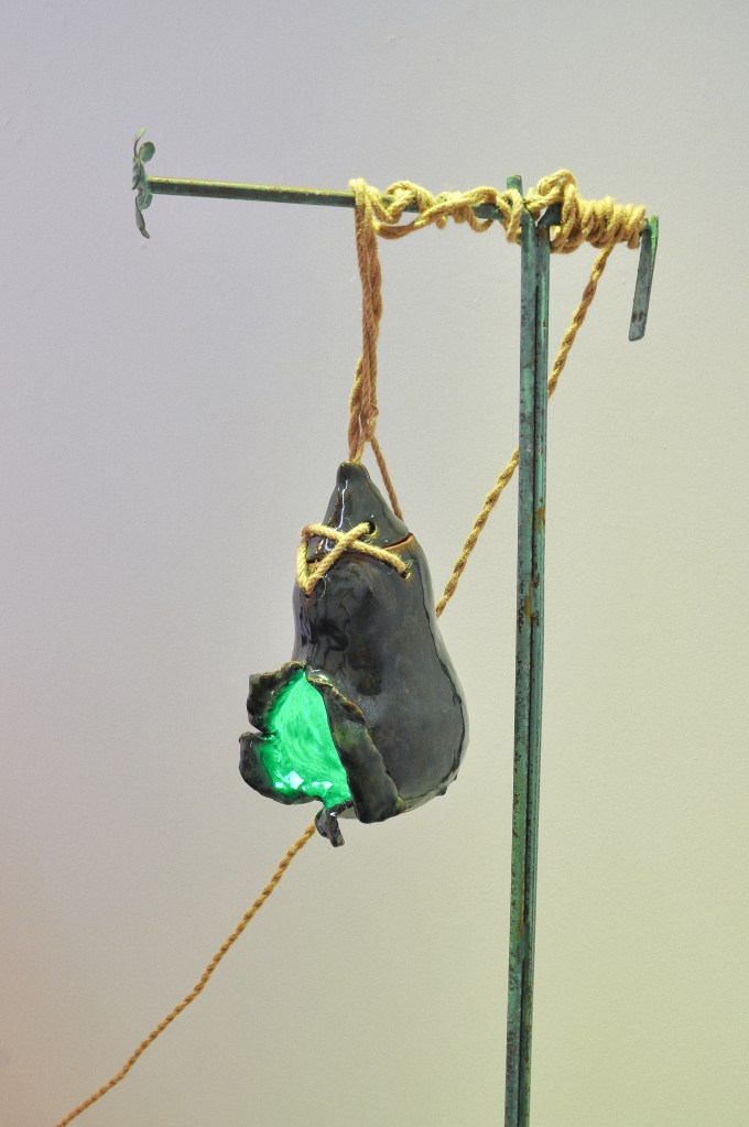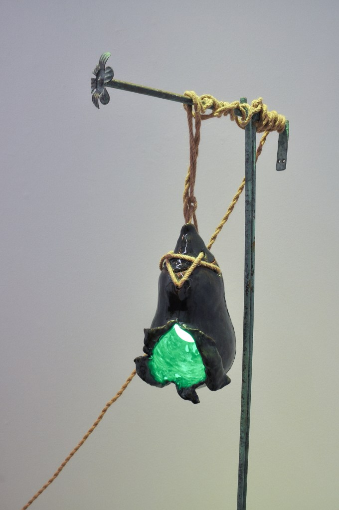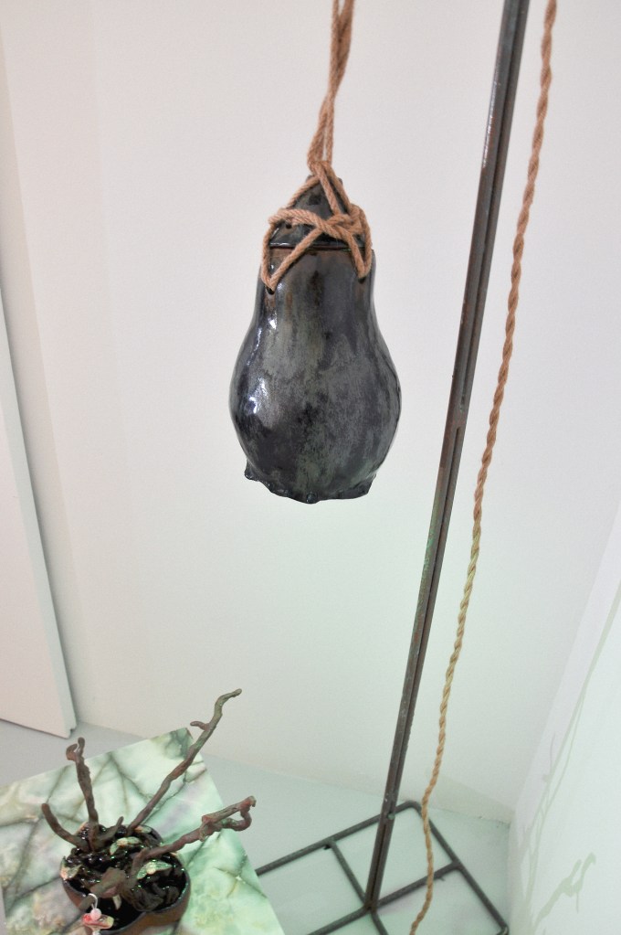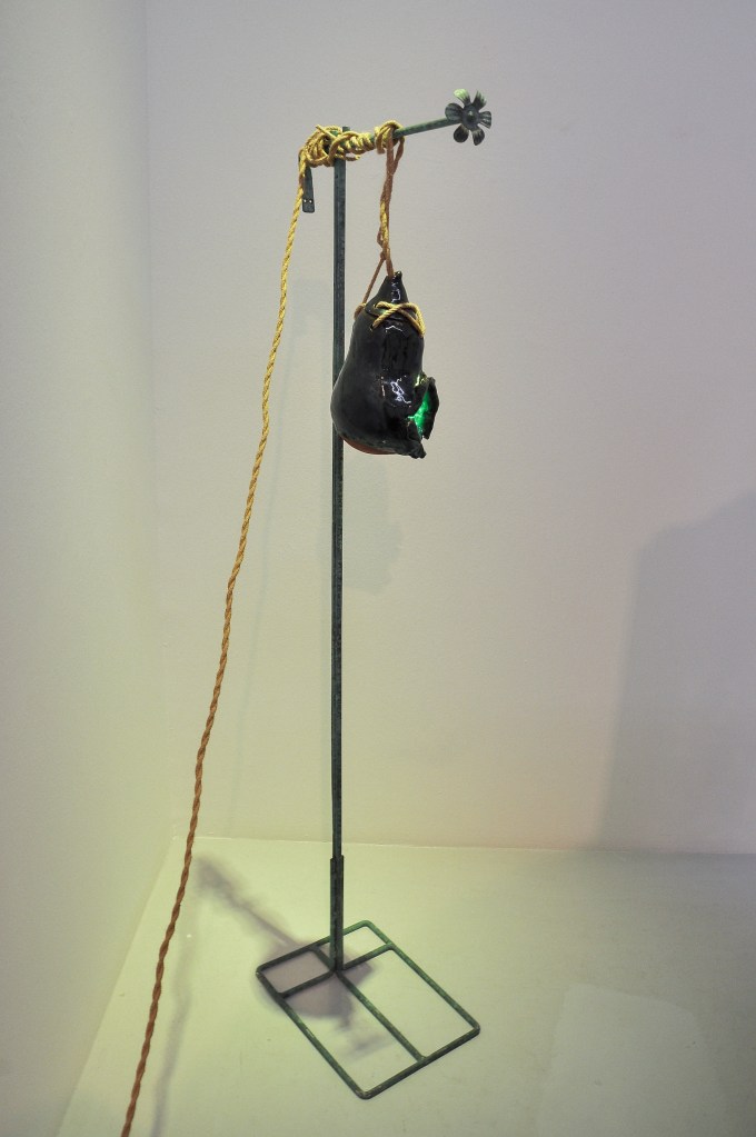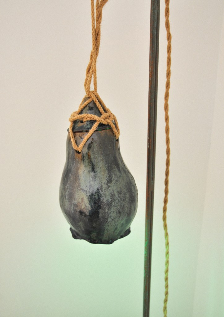Medium: Ceramic with light bulb, cord, rope and metal stand