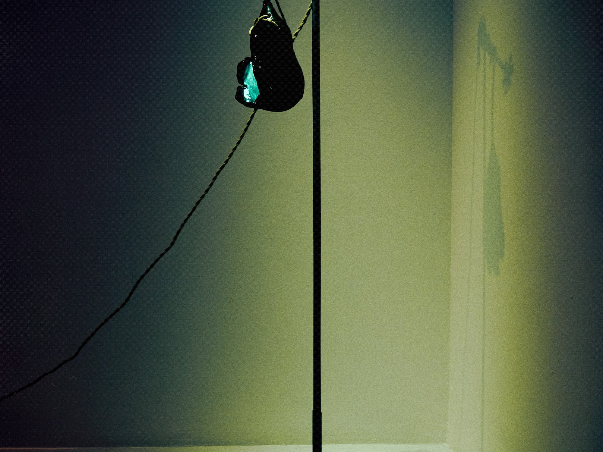 Medium: Ceramic with light bulb, cord, rope and metal stand
