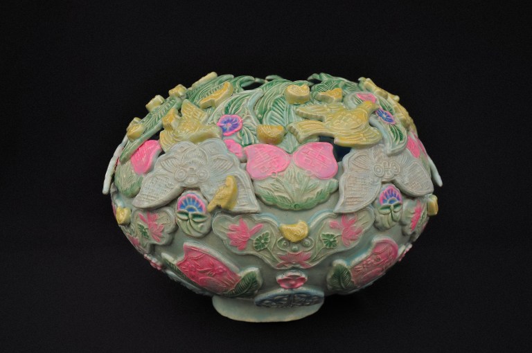 ‘The Sun, the Moon, and the Sparrows’ is created from clay reliefs derived from vintage pastry moulds collected from various parts of the world. Each piece acts as a cultural bridge, with intricate textures and forms reflecting the rich tapestry of shared experiences, values, and culinary heritage that unite us. The colours of the work and the Sparrows were inspired by the various traditional Chinese buildings in Singapore, where the birds stood apart from other building elements. The shape is inspired by the Sun, symbolising vitality, and the Moon, symbolising reunion; together, they embody the duality of day and night, while the Sparrows act as messengers and observers of this transition, embodying the spirit of joy and exploration. Together, these elements invite viewers to celebrate the warmth of community and the beauty of understanding our diverse backgrounds.