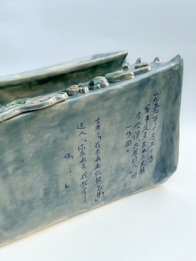 By tracing this image onto clay and incorporating elements inspired by the National Theatre, this work connects family history with Singapore’s theatrical and cultural heritage. It reflects how performance and activism were deeply intertwined in shaping the country’s early cultural and political landscape. This piece honours my grandfather’s involvement as someone who, like many others of his time, contributed to Singapore’s evolving cultural and political fabric.