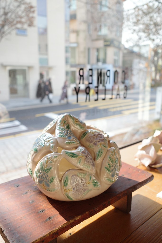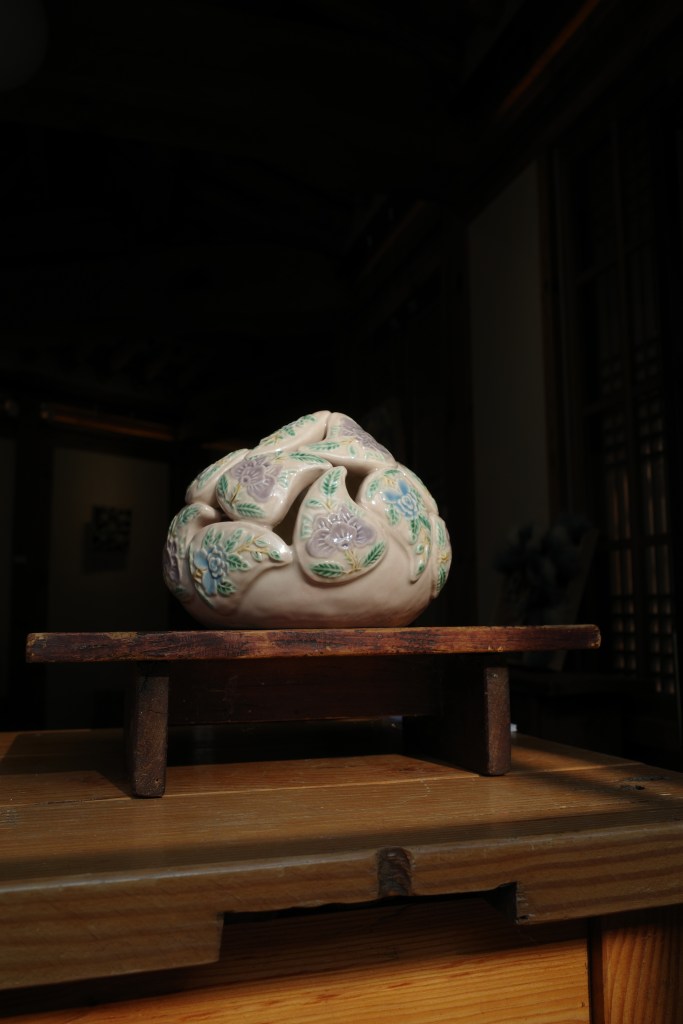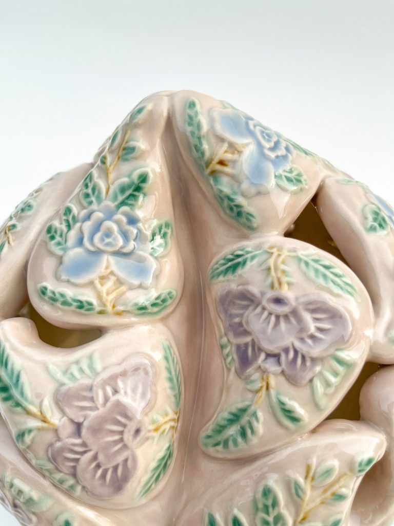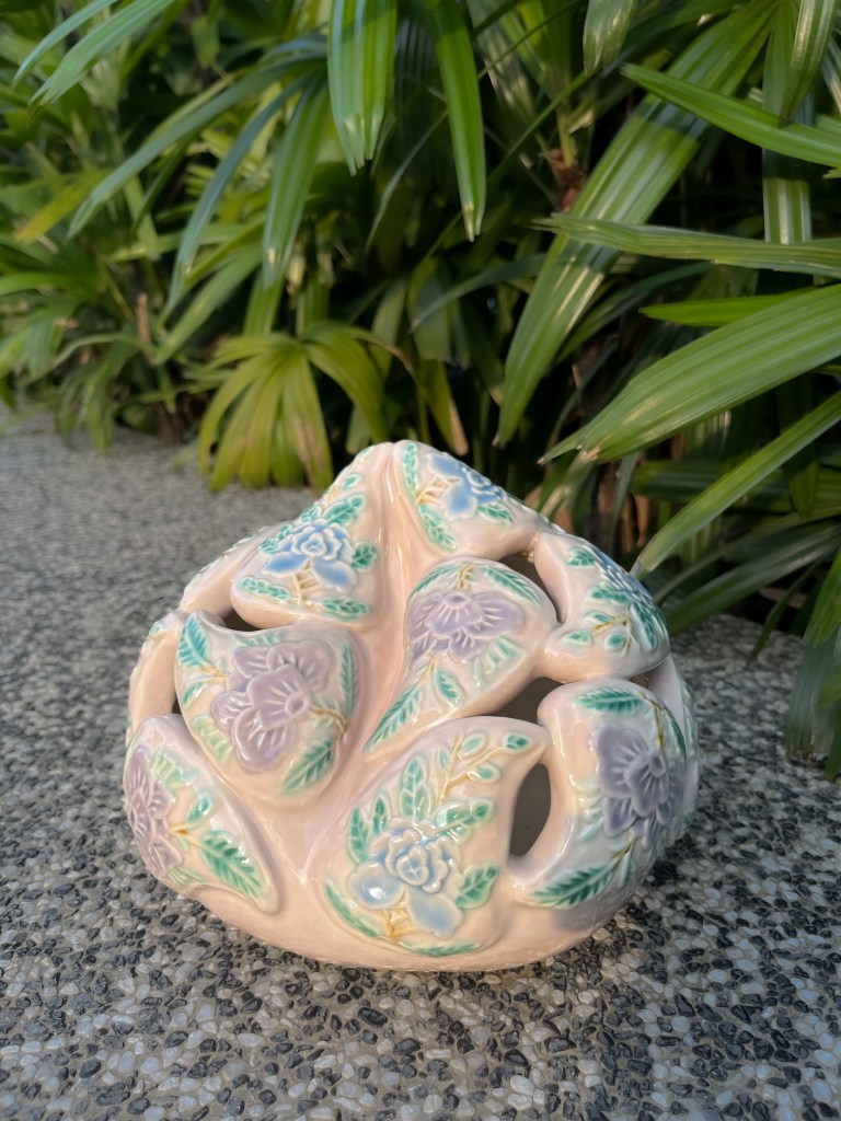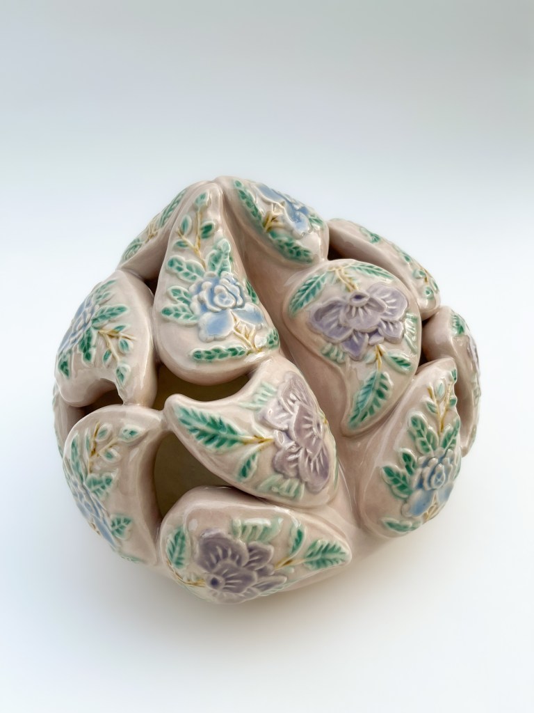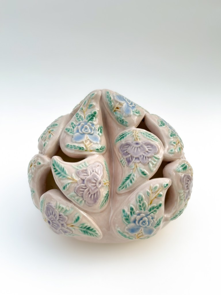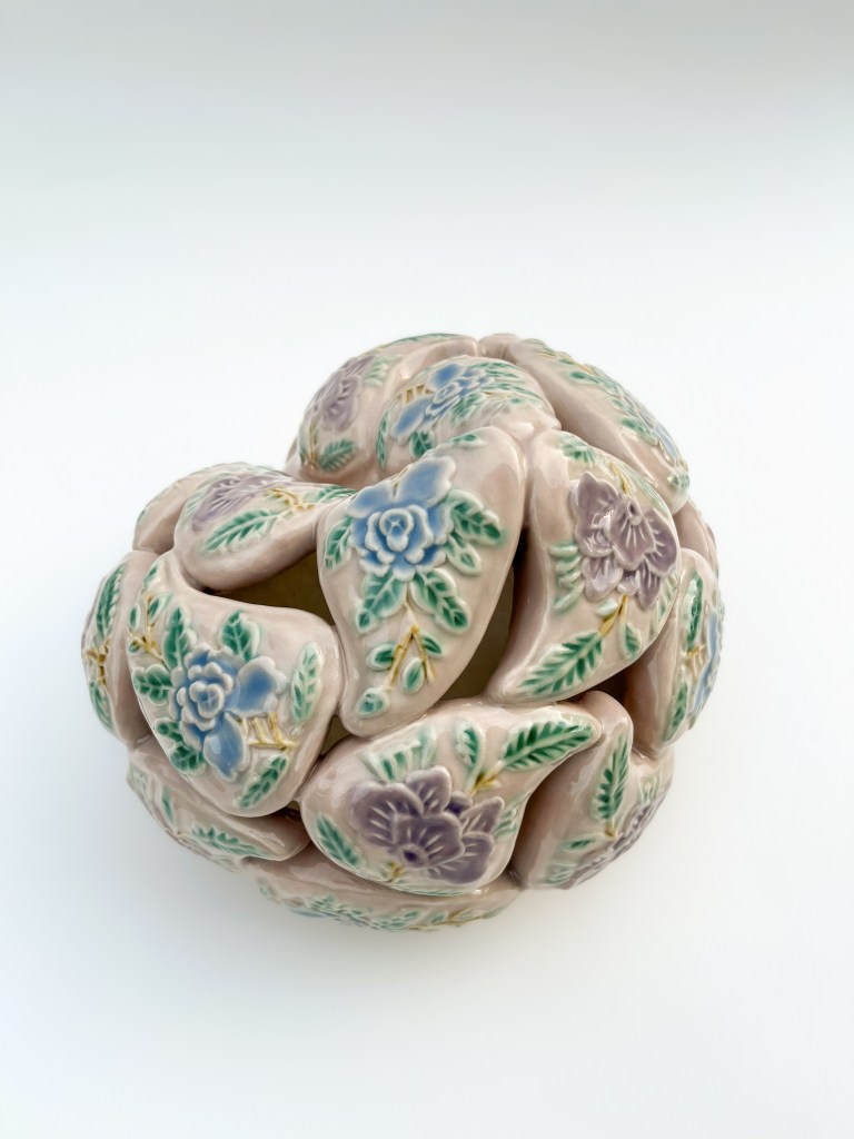 Petals of Longevity was created using rare vintage Peranakan Png kueh moulds, discovered in one of the antique shops in Singapore. These moulds embody the symbolic language and humble craftsmanship of folk artisans. To preserve and reveal their intricate details, clay was pressed into the moulds with careful adjustments to thickness and clarity, and then cast in plaster. This process allowed the impressions to be cleanly extracted and repeated, resulting in a deliberate arrangement around the peach body.