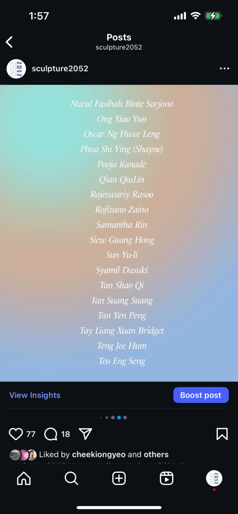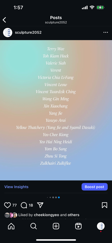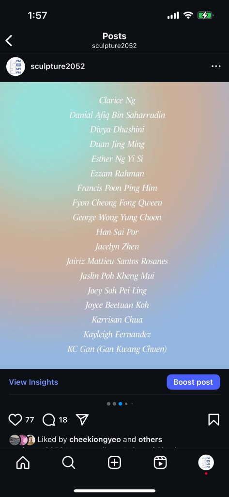 SCULPTURE 2052, an art space and also a research project that is dedicated to the art of Sculpture. It is conceived as an ongoing research endeavour to investigate the practice of Sculpture in Singapore through the sculptors’ perspective and vision.