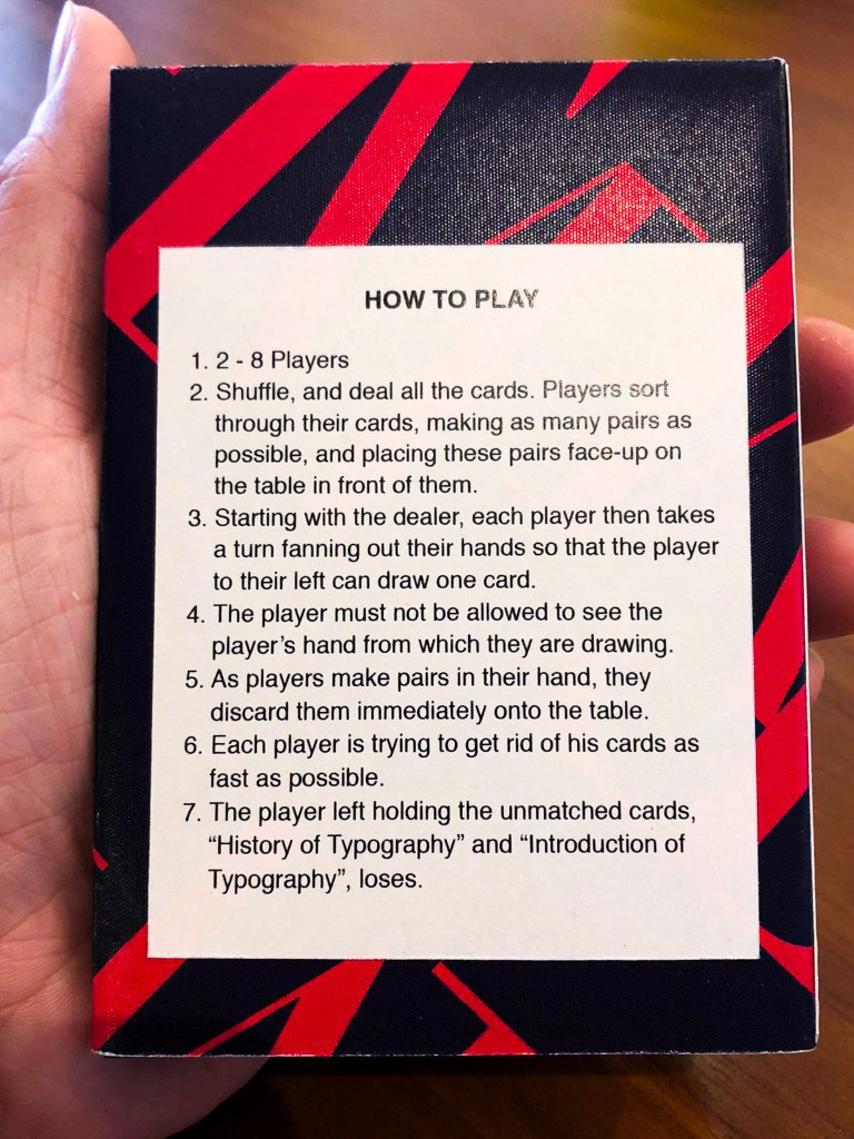 Made as a typography learning activity, this is a card game inspired by vintage card games like Old maid and Donkey.